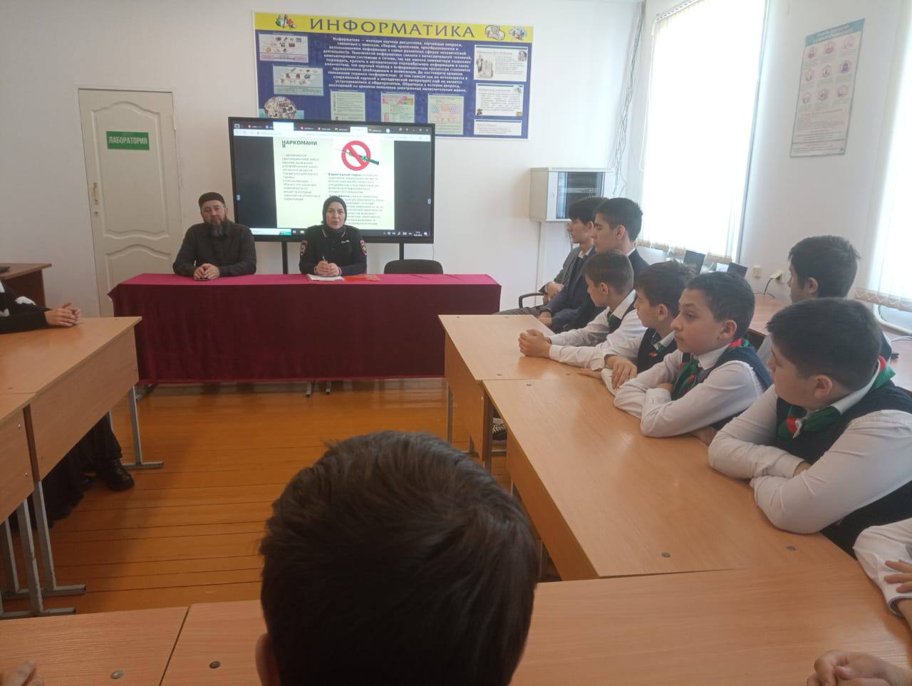 16.01.202416.01.2024 г в МБОУ "СОШ3 с. Ножай-Юрт" была организована встреча учащихся с инспектором ПДН ОМВД России по Ножай-Юртовскому району Маидовой М. В разговоре с 7-10-х классов инспектор напомнила школьникам о вреде употребления спиртных напитков и табака, а также объяснила, чем опасны эти пагубные привычки, напомнила ребятам о правилах дорожного движения, подробно остановилась на необходимости соблюдения этих правил, а также объяснили, чем опасны наушники при катании на велосипедах, при переходе через дорогу, опасность психотропных веществ, ответственности за совершение таких преступлений, как кража, грабёж, вымогательство, причинение телесных повреждений. Подросткам было разъяснено, с каких лет наступает уголовная ответственность и какие наказания применяются за совершение преступлений.