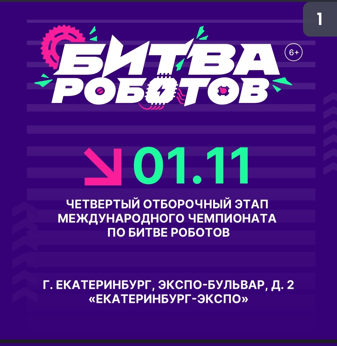 🗓Мероприятие пройдет 1 ноября 2025 г. с 11:30 до 19:30 (по местному времени) при поддержке Правительства Свердловской области.📍Территория проведения — Международный выставочный центр «Екатеринбург-ЭКСПО» по адресу: Свердловская область, г. Екатеринбург, ЭКСПО-бульвар, д. 2. Программой мероприятия предусмотрено два шоу: дневное (с 13:00 до 14:30) и вечернее (с 18:00 до 19:30).🔹На арене встретятся 28 команд из России, Беларуси, Индии и Китая. В программе — поединки мощных машин в категориях до 110 кг и до 1,5 кг.Состав участников:➖16 команд (взрослые) — роботы до 110 кг;➖12 команд (дети) — мини-роботы до 1,5 кг.🔹За предыдущие три отборочных этапа Чемпионата, в которых приняли участие 84 команды со всего мира, только 24 встретятся в финальном этапе, чтобы побороться за титул чемпиона битвы роботов 2025 года.➡️Подробнее о «Битве роботов» на сайте https://clck.ru/3PJtKW ➡️Ссылка на прямую трансляцию Чемпионата https://clck.ru/3Puz3V